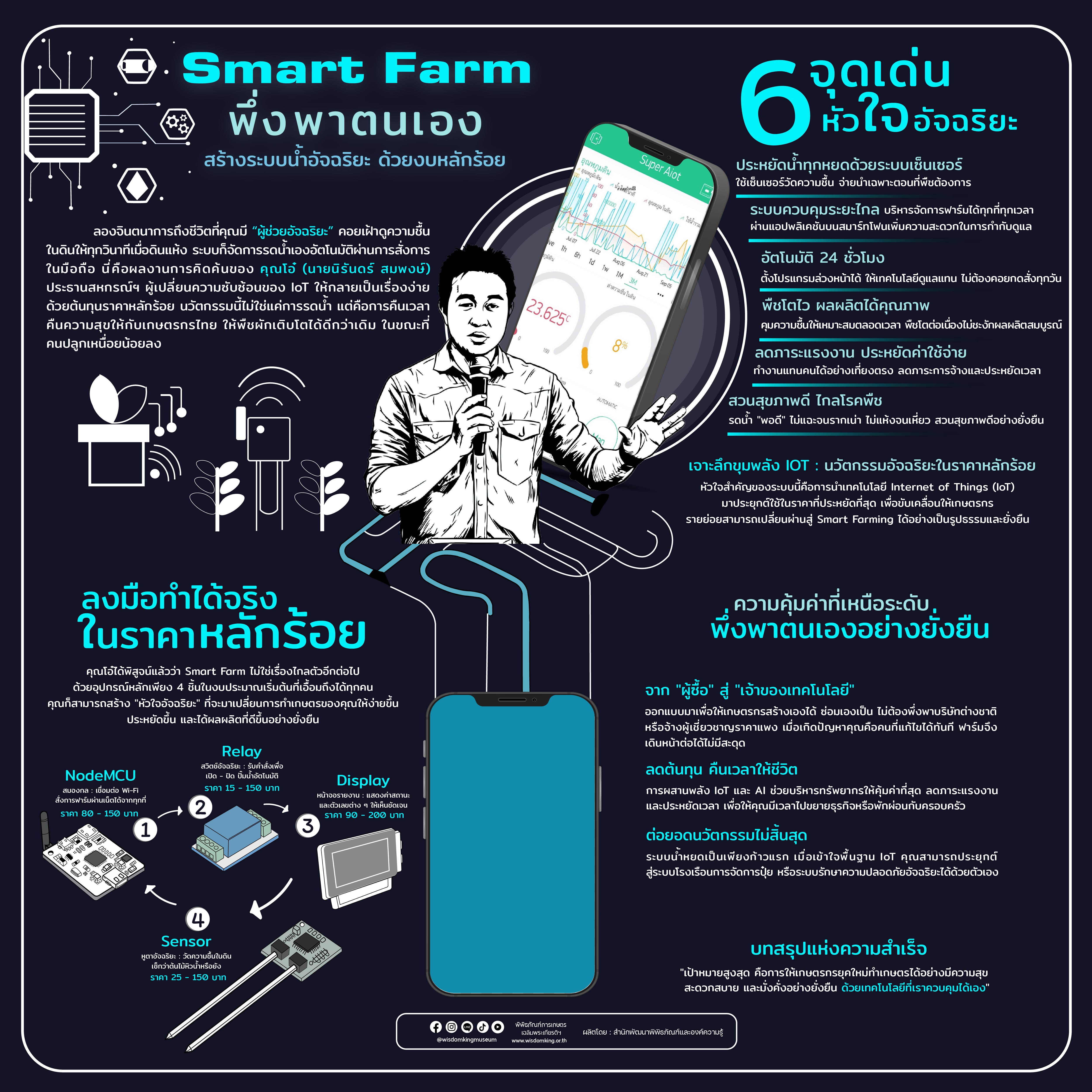 ลองจินตนาการถึงชีวิตที่คุณมี “ผู้ช่วยอัจฉริยะ” คอยเฝ้าดูความชื้นในดินให้ทุกวินาที เมื่อดินแห้ง ระบบก็จัดการรดน้ำเองอัตโนมัติผ่านการสั่งการในมือถือ นี่คือผลงานการคิดค้นของ คุณโอ๋ (นายนิรันดร์ สมพงษ์) ประธานสหกรณ์ฯ ผู้เปลี่ยนความซับซ้อนของ IoT ให้กลายเป็นเรื่องง่ายด้วยต้นทุนราคาหลักร้อย นวัตกรรมนี้ไม่ใช่แค่การรดน้ำ แต่คือการคืนเวลาคืนความสุขให้กับเกษตรกรไทย ให้พืชผักเติบโตได้ดีกว่าเดิม ในขณะที่คนปลูกเหนื่อยน้อยลง